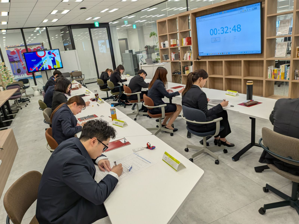 静かな会議室に響くのは、鉛筆を走らせる音と緊張感と共にテストをめくる音。